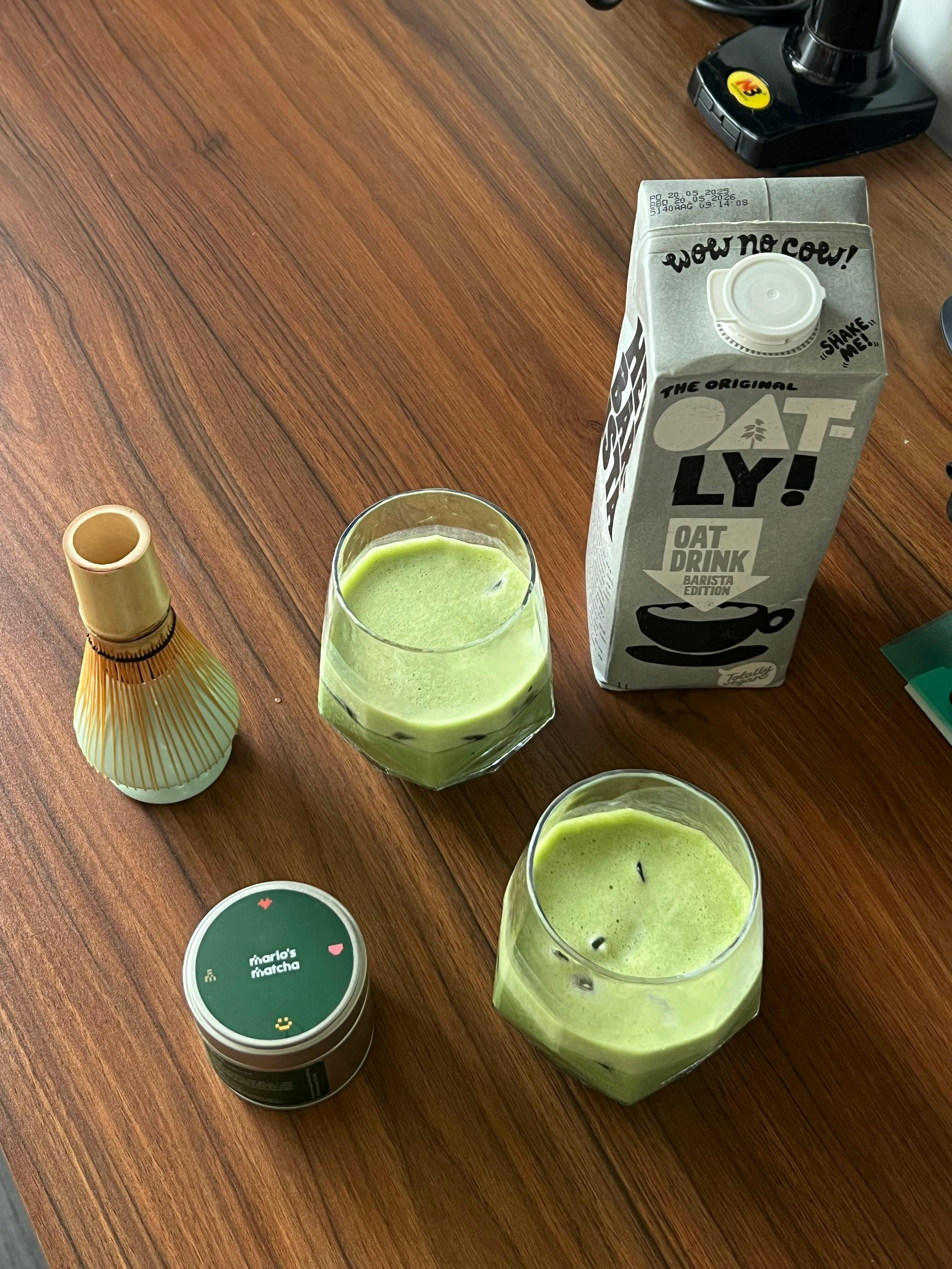 🥛 For a creamy matcha latte, sift 1.5 tsp matcha to 60 ml hot (not boiling) water at around 80°C. Whisk for 15–30 seconds in a M & W (zig-zag) motion. Pour over 200 ml of your choice of milk (we love oat) and enjoy hot or iced!